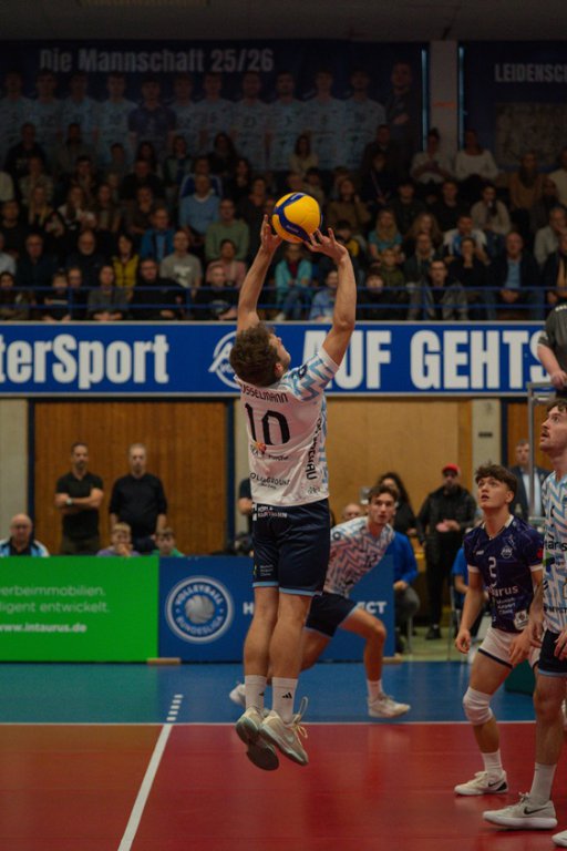 Zumal das Team selbst erst vor wenigen Wochen eine bitte Erfahrung machen musste und gegen den Außenseiter vom Nachwuchsteam des VCO Berlin selbst mit 2:3 den Kürzeren zog. "Da haben wir schmerzlich lernen müssen, dass jedes Team in der Liga gut Volleyball spielen kann und wir deshalb in jedem Spiel und gegen jeden Gegner unsere Leistung bringen müssen. Wenn wir das schaffen, müssen wir uns aber auch nicht verstecken", zeigt Zuspieler Russelmann Demut und Selbstvertrauen zugleich. Dass das Selbstvertrauen zurückgekehrt ist, liegt für Steuerwald dabei auch an Russelmann selbst: "Luca bringt eine super Energie aufs Feld und ins Team, hat sein Spiel in den letzten Wochen gesteigert und macht seinen Job Woche für Woche besser. Da profitieren die Jungs im Angriff dann natürlich und kommen auch auf bessere Leistungen und Statistiken."