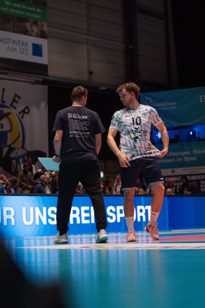 Foto: Trainer Patrick Steuerwald und Zuspieler Luca Russelmann hoffen auf einen erfolgreichen Doppelspieltag. (Fotograf: Leon Greitner)