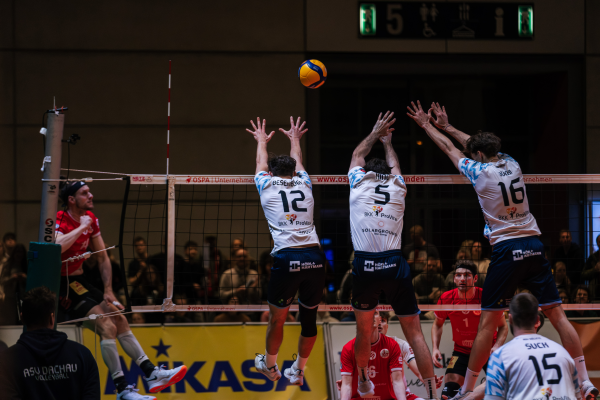 Sehr ausgeglichen verlief dann der vierte Satz, in dem sich diesmal kein Team entscheidend absetzen konnte. Erst als es 23:22 für die Gastgeber hieß, gelang Warnemünde ein weiteres wichtiges Break für den Matchball. Und vor 1.500 begeisterten Zuschauern verwandelte der Aufsteiger auch direkt den ersten Matchball und meldete sich damit im Kampf um den Klassenerhalt zurück.